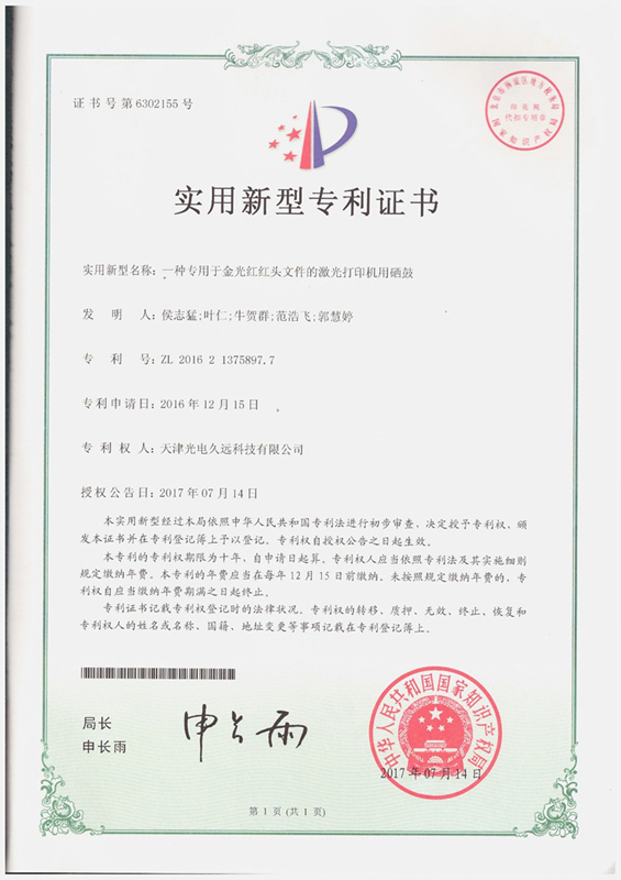 一種專(zhuān)用于防偽打印文件的激光打印機(jī)用正電硒鼓-實(shí)用